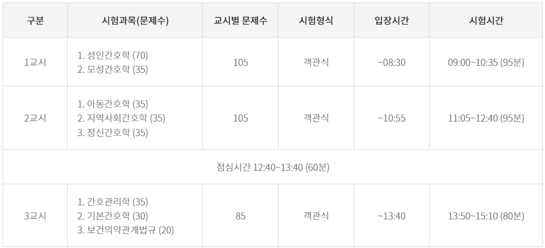 간호사시험 시험시간표