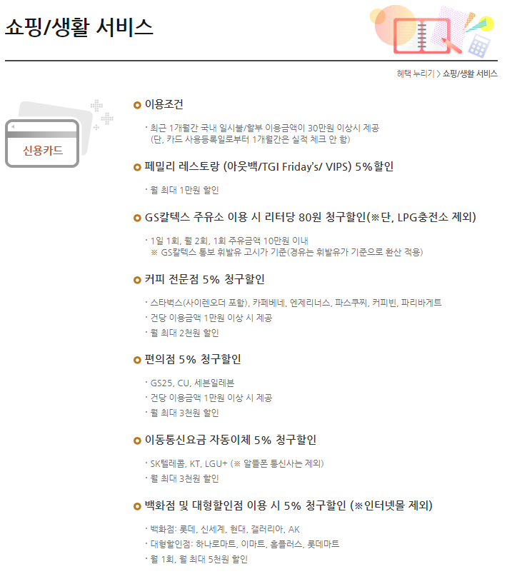 또한, 스타벅스와 같은 커피 전문점에서는 5% 할인 혜택을 받을 수 있습니다.