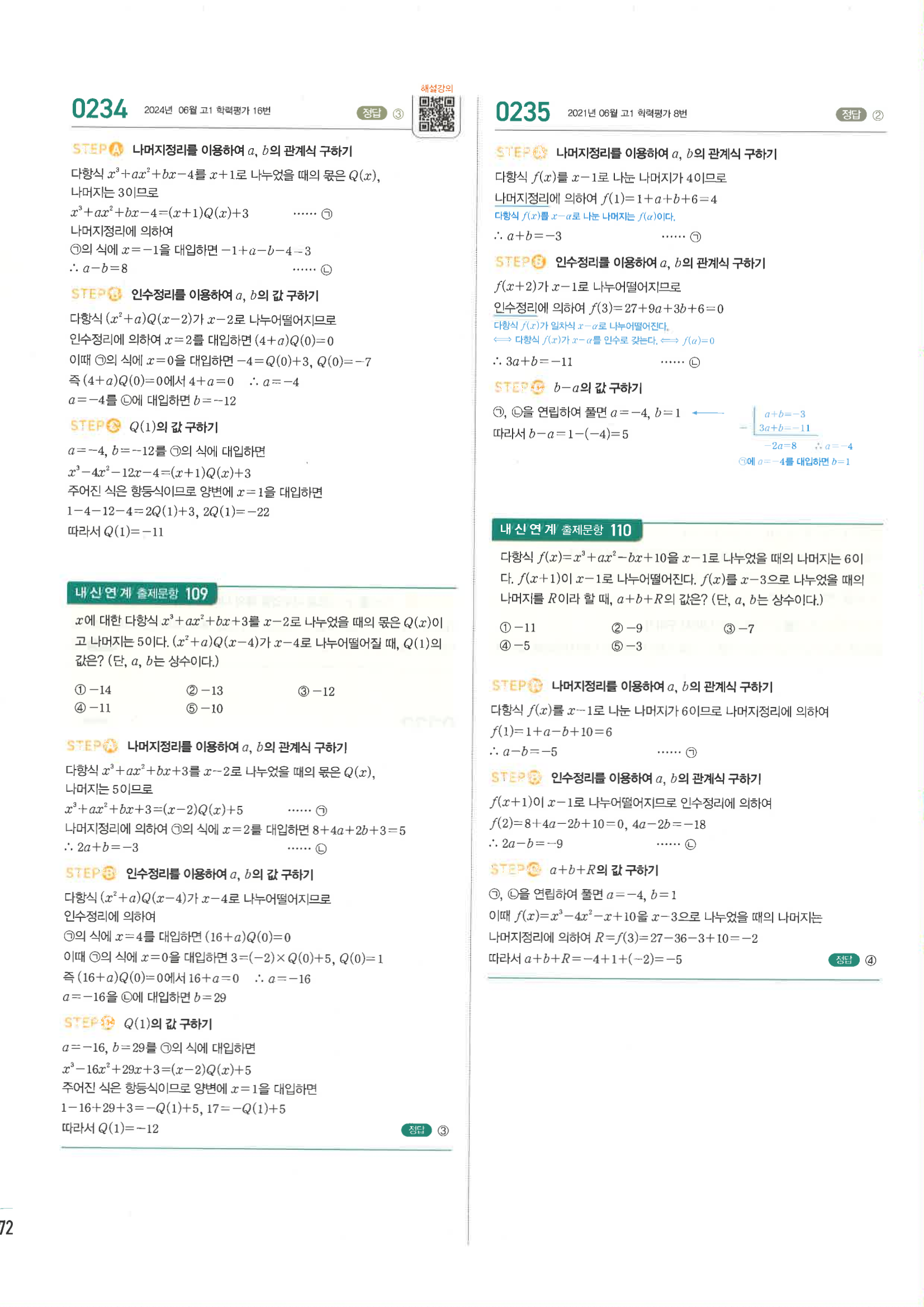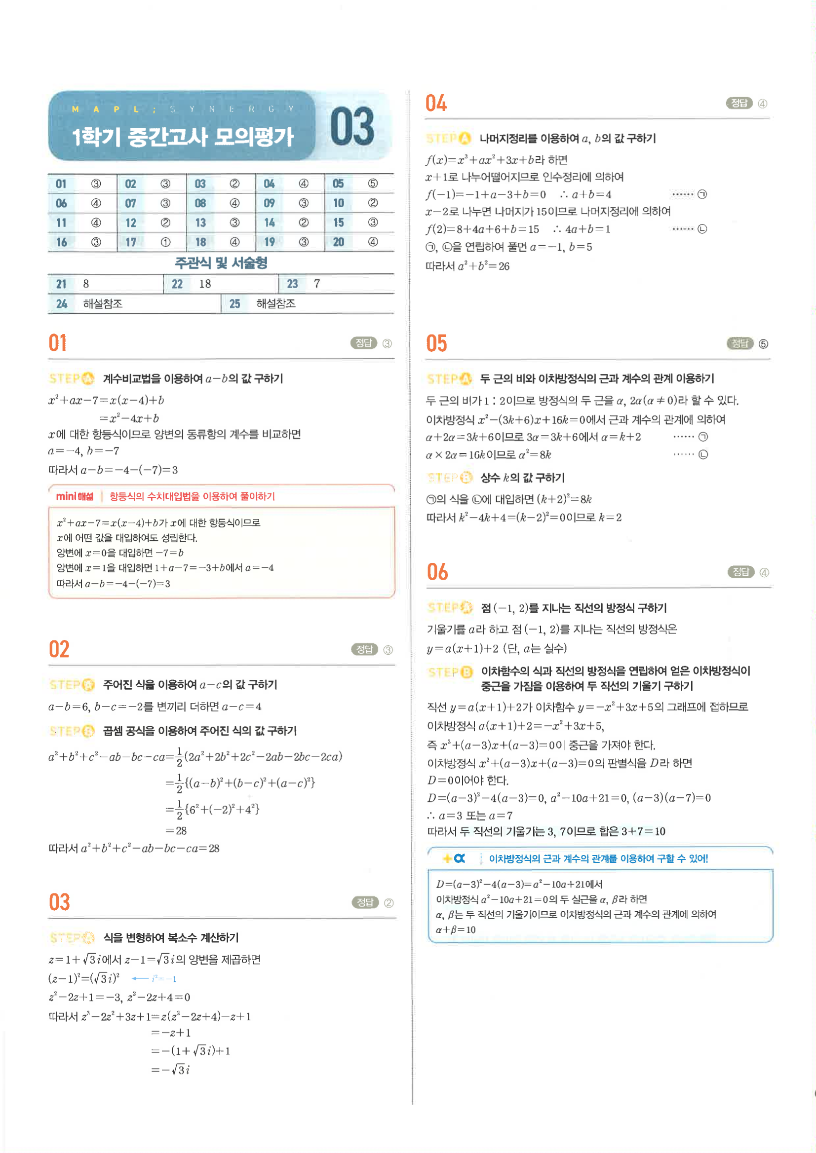 마플시너지 공통수학1 답지 해설. 정답. 빠른답지 바로 보기 본문