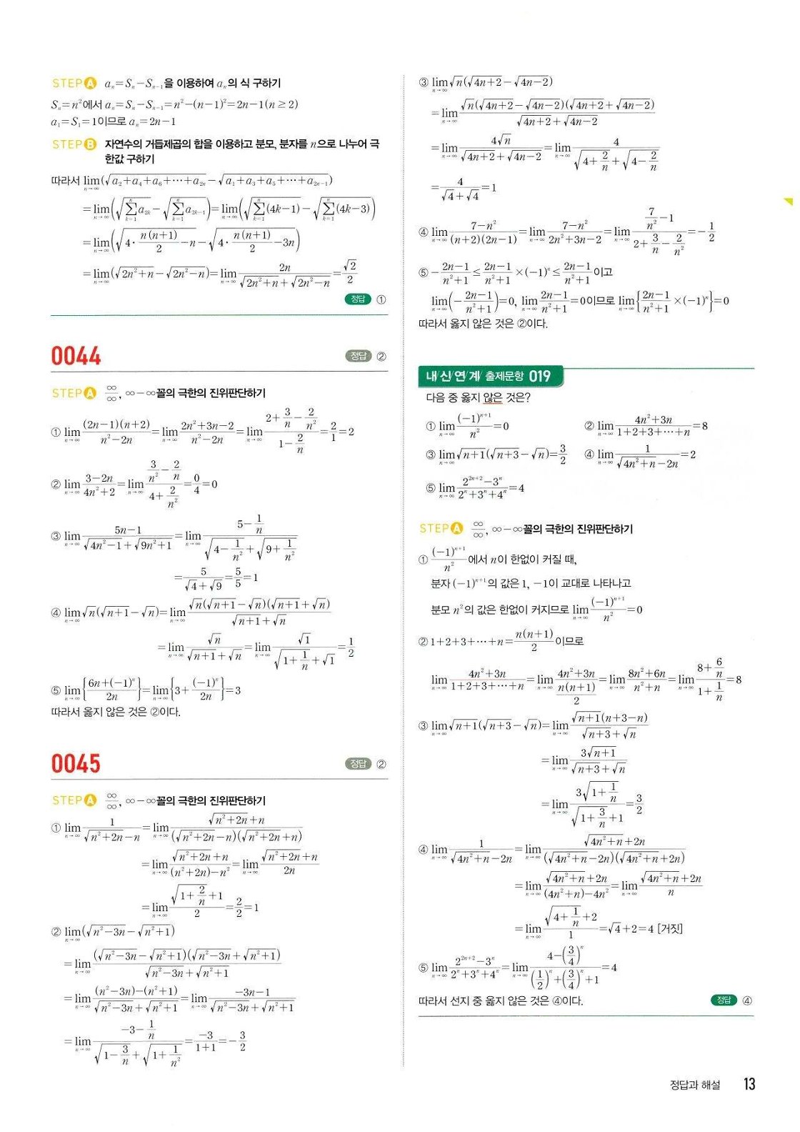 마플시너지 미적분 답지 해설 바로보기 1-455