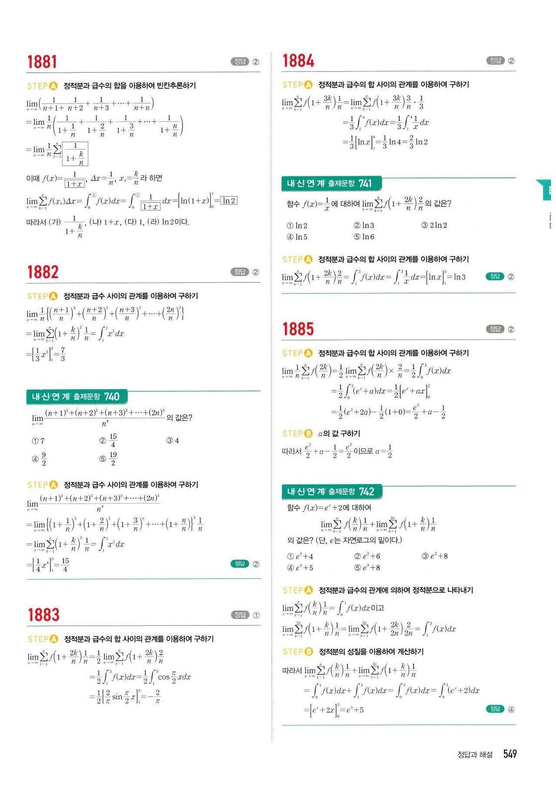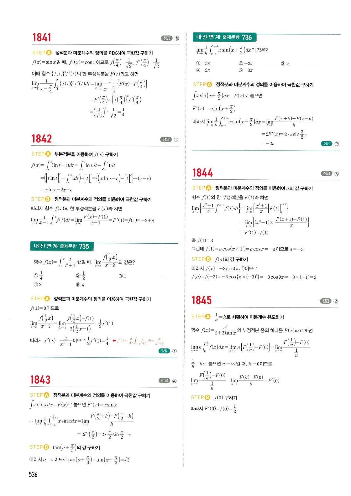 마플시너지 미적분 답지 해설 바로보기 1540 - 2049