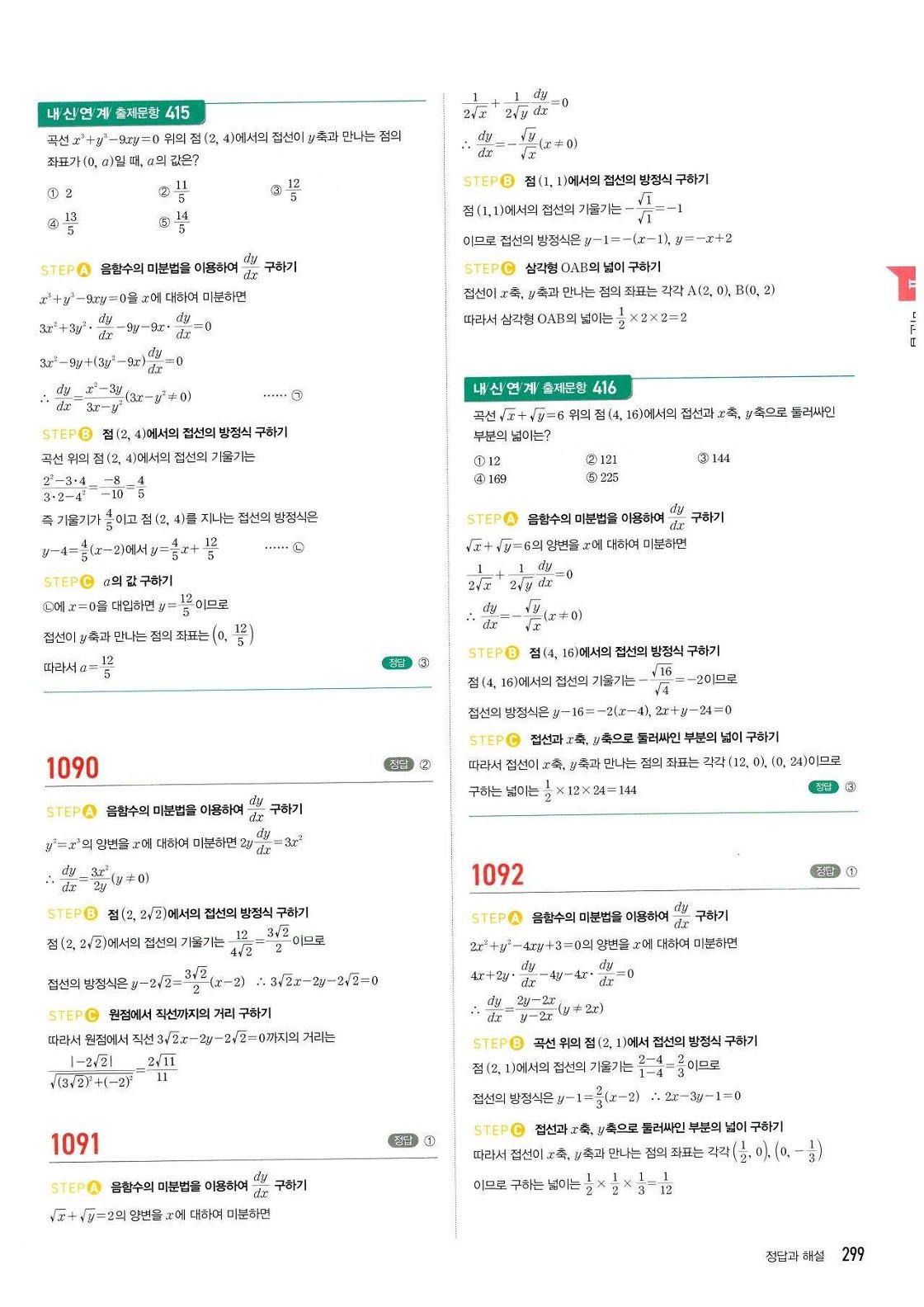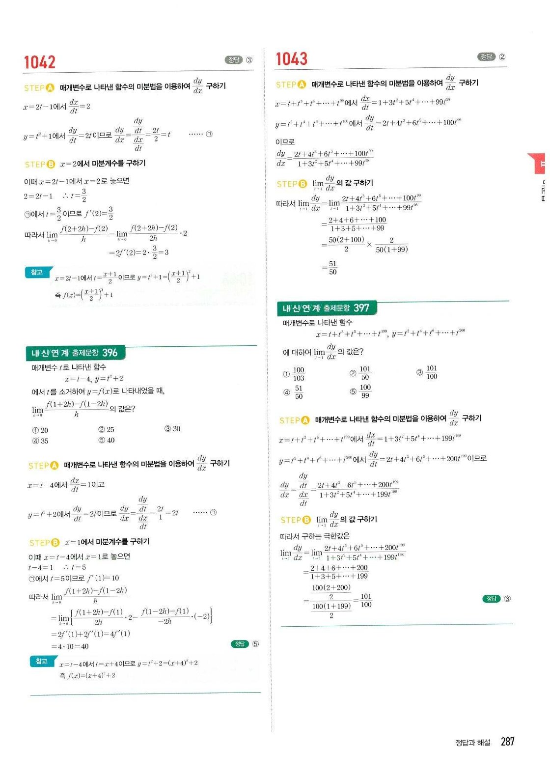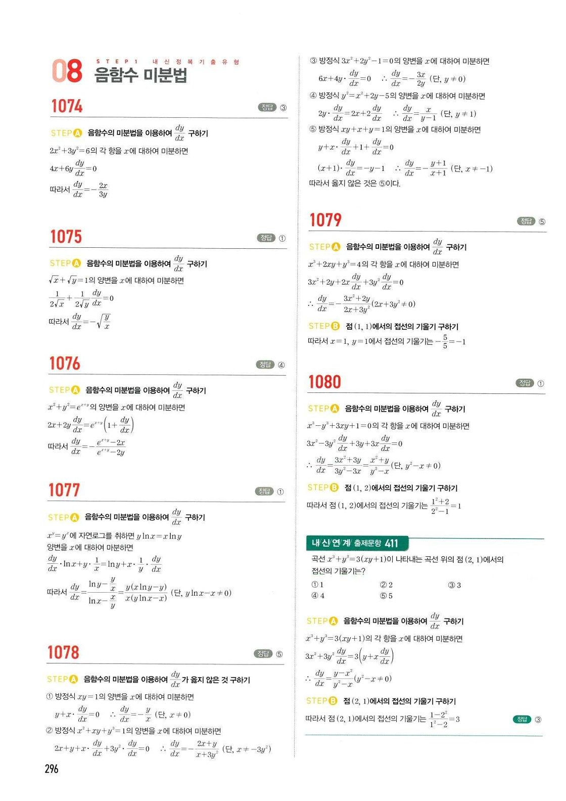 마플시너지 미적분 답지 해설 바로보기 456 - 1096
