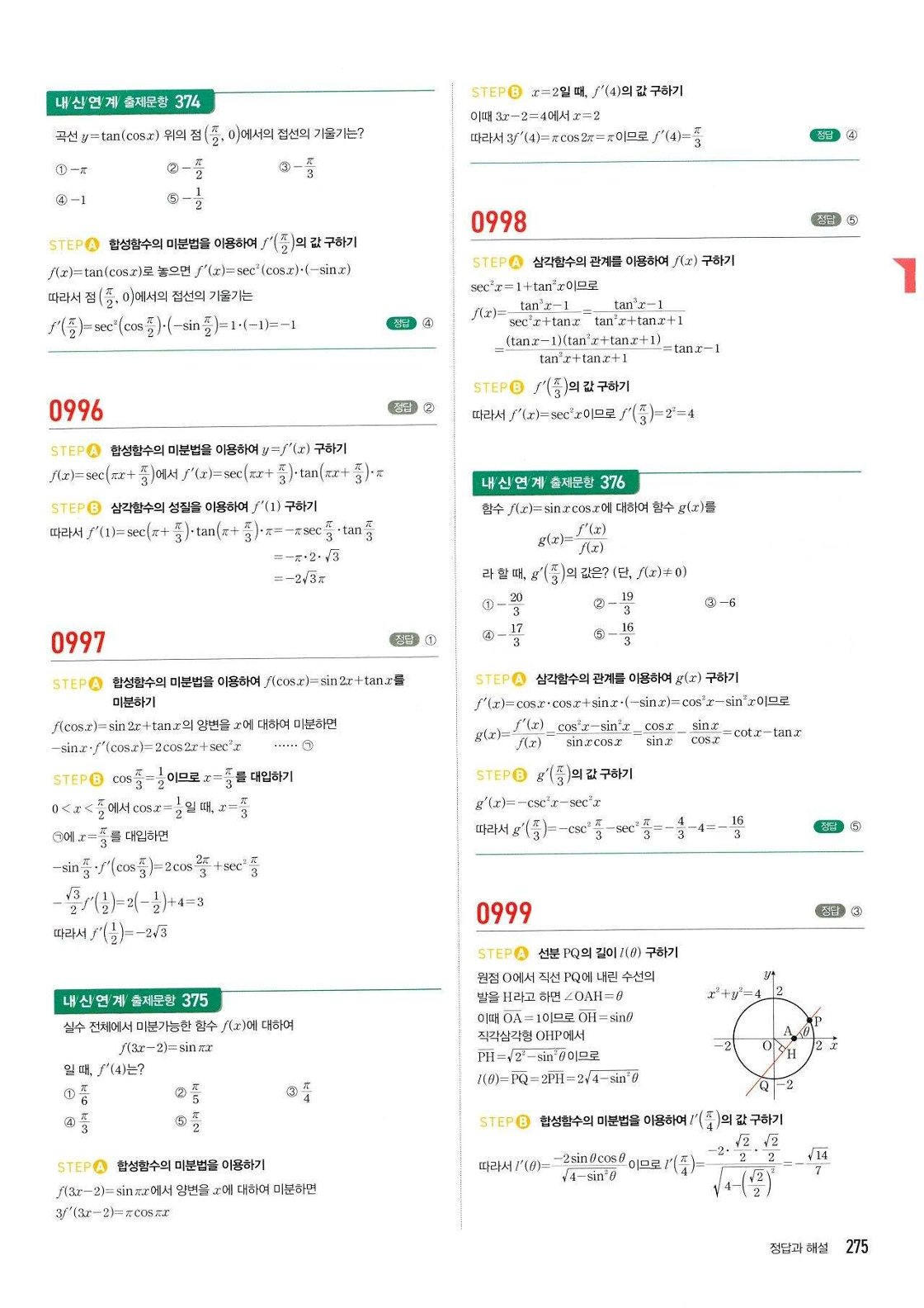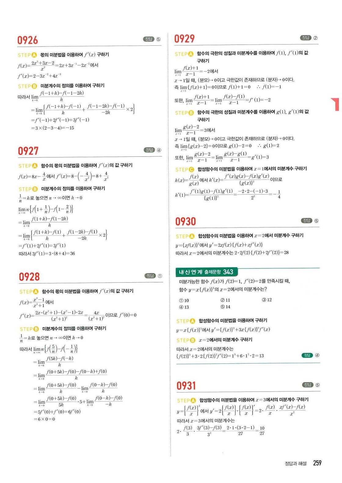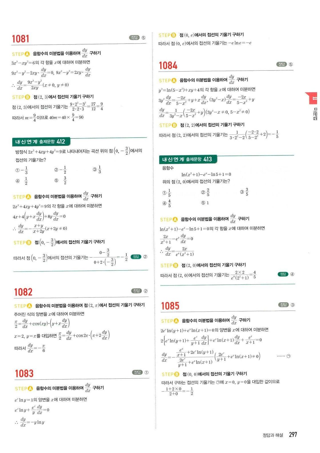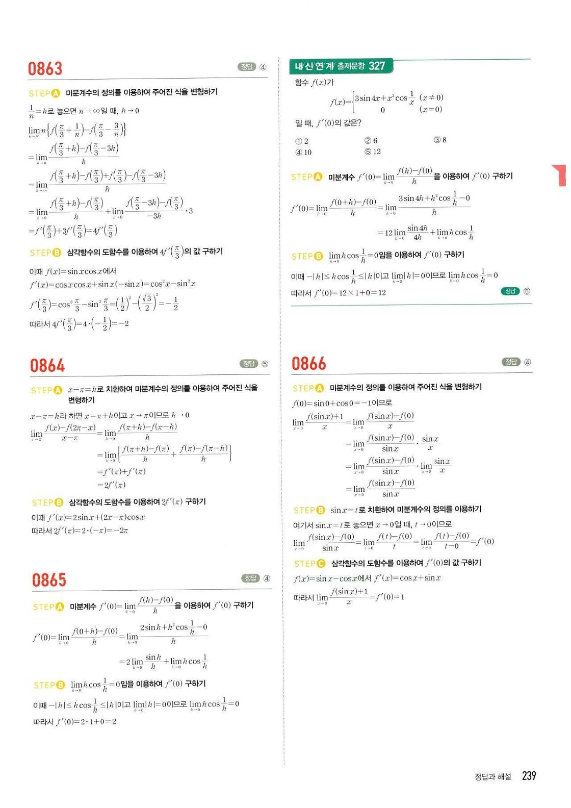 마플시너지 미적분 답지 해설 바로보기 456 - 1096
