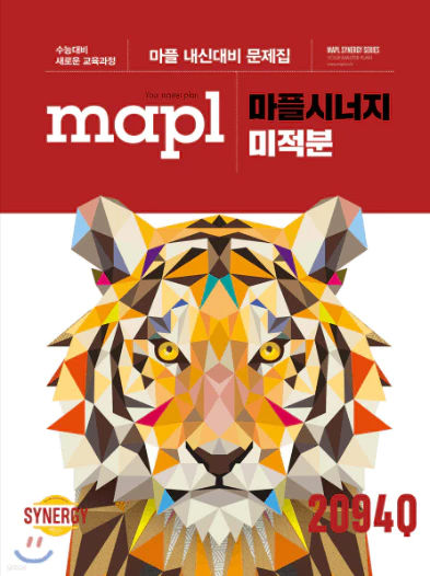 마플시너지 미적분 교재의 표지는 빨간색에 호랑이 그림이 그려져 있는 교재로 다음과 같고 목차는 하단에 첨부해 두도록 할께요.