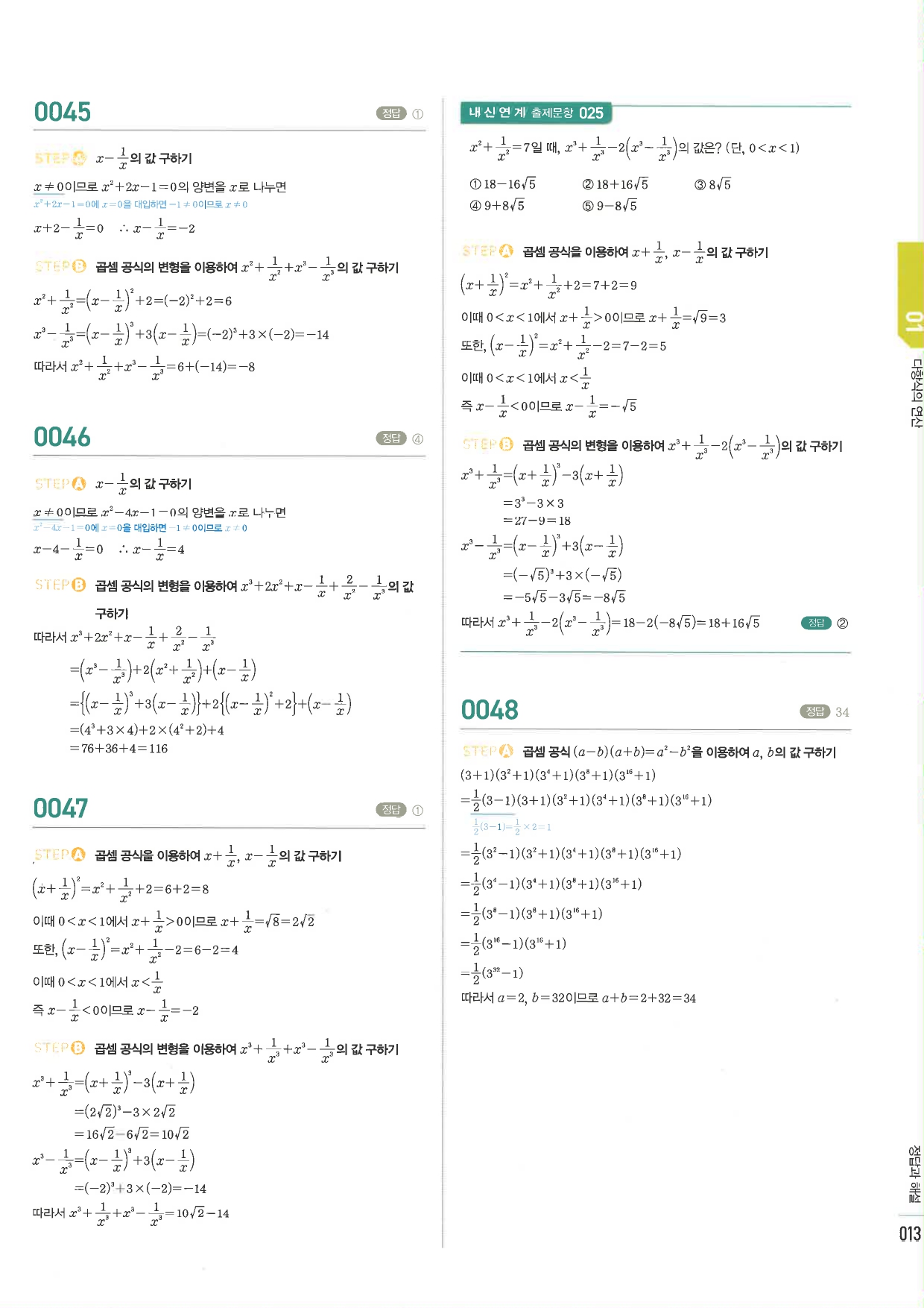 마플 시너지 공통수학1 답지 01-50 (마플SNG 공통수학1) 본문