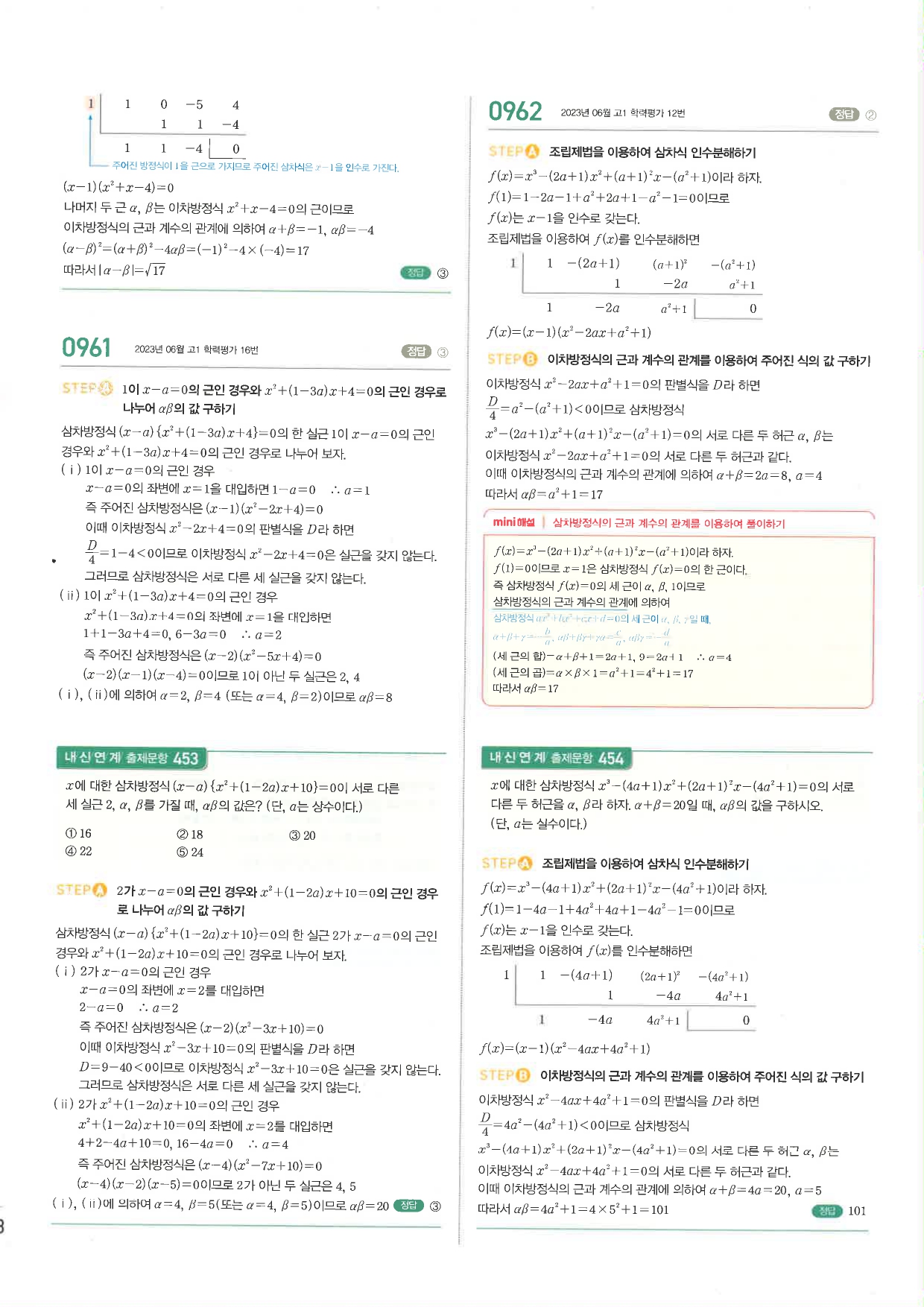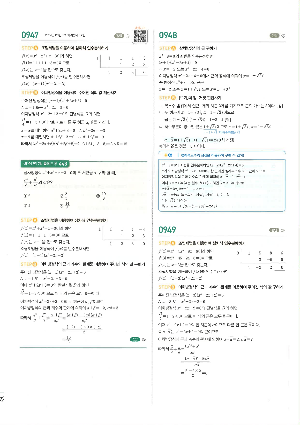 마플시너지 공통수학1 주요문항 풀이