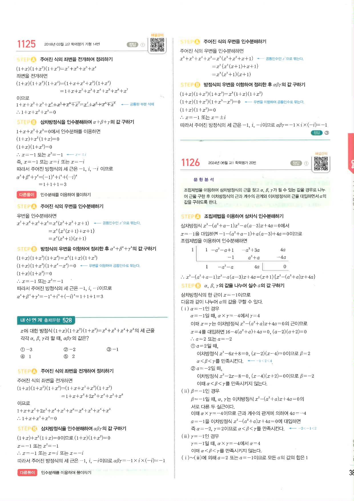 마플시너지 공통수학1 주요문항 풀이