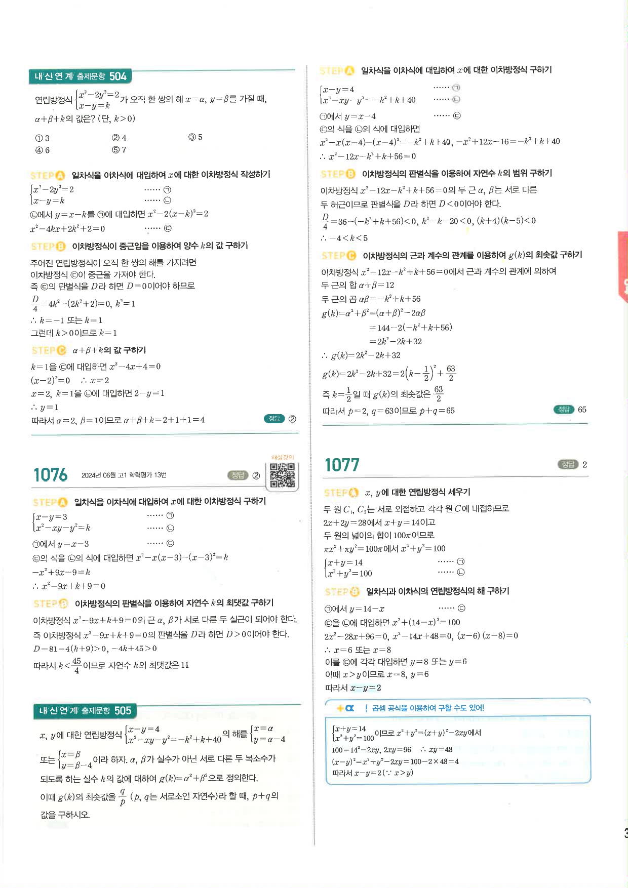 한 권만 제대로 풀어도 고등학교 공통수학1의 모든 문제 유형을 접할 수 있을 정도로 풍부한 구성을 자랑합니다.