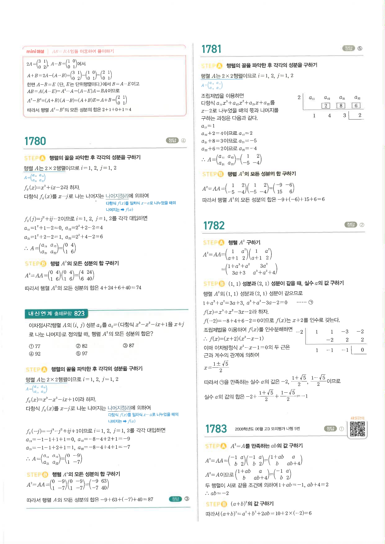 한 권만 제대로 풀어도 고등학교 공통수학1의 모든 문제 유형을 접할 수 있을 정도로 풍부한 구성을 자랑합니다.
