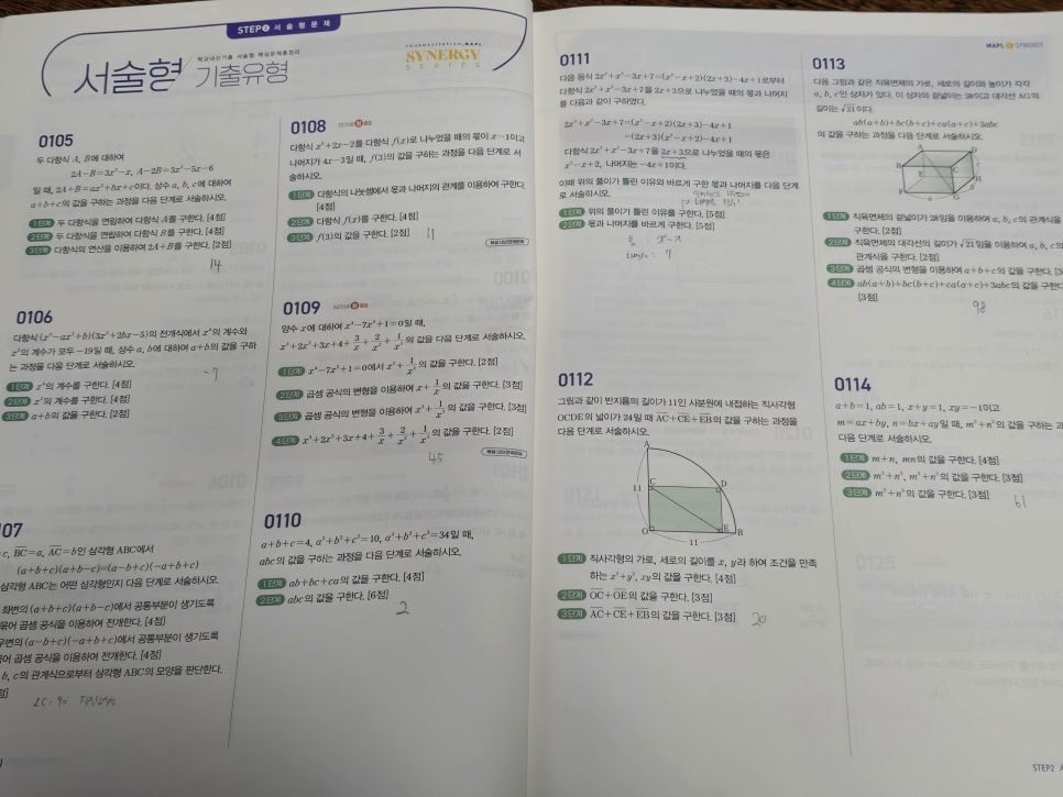 마플시너지 시리즈는 수학 교재 중에서도 난이도와 문제 수가 많기로 유명합니다.