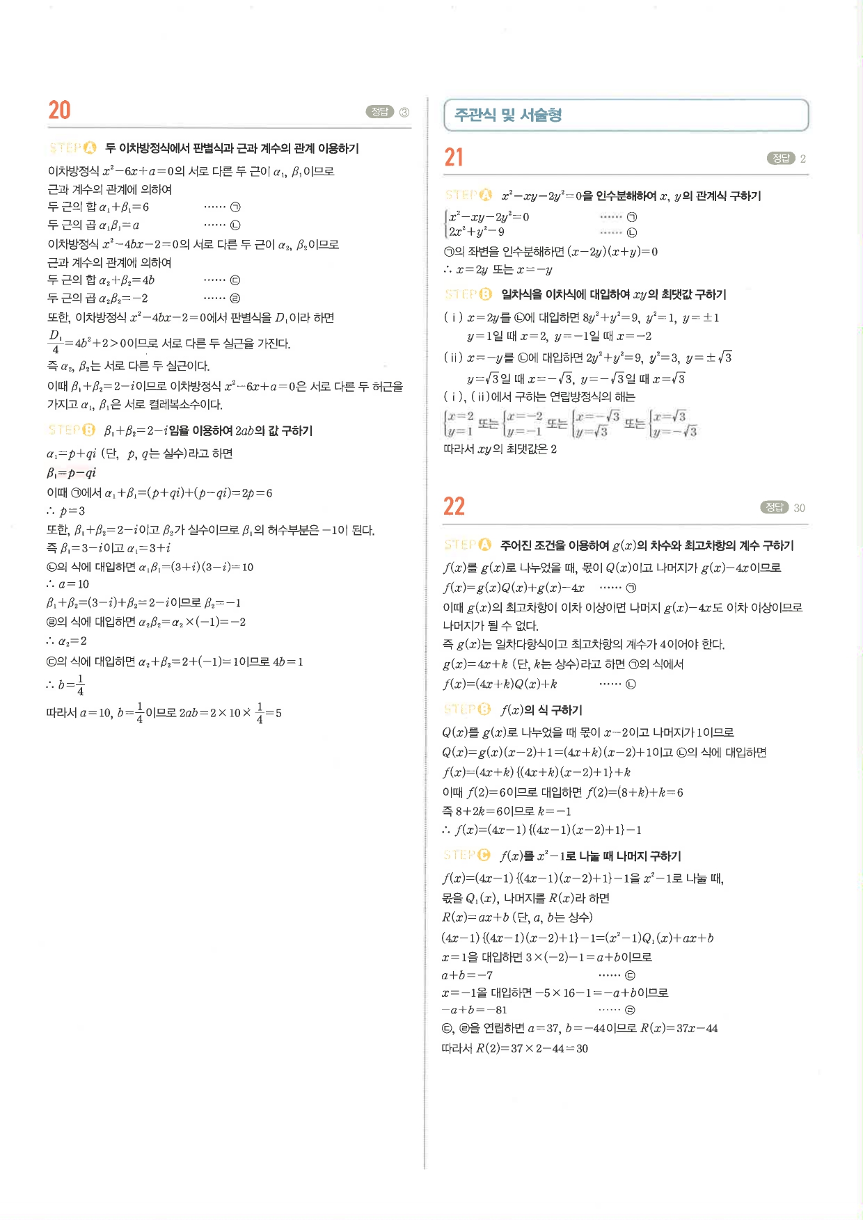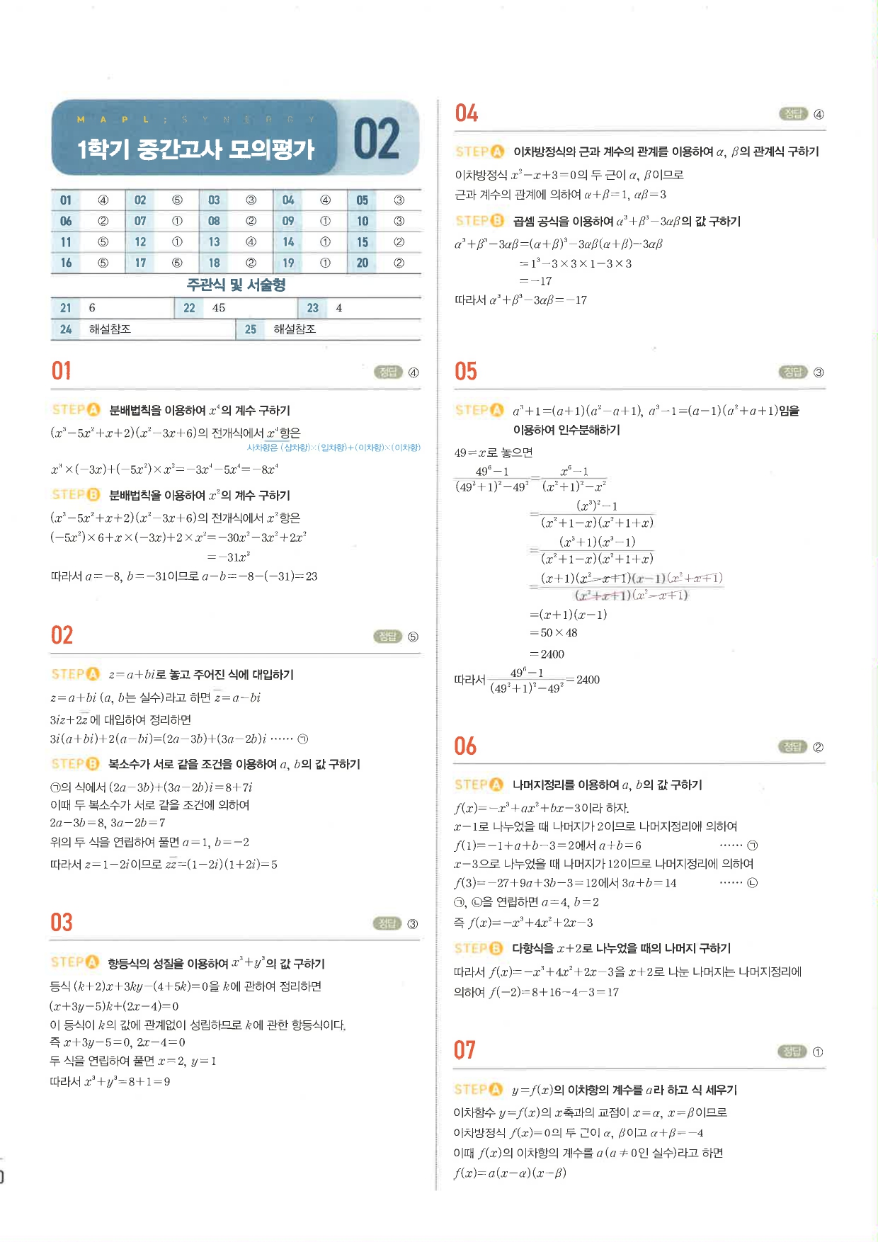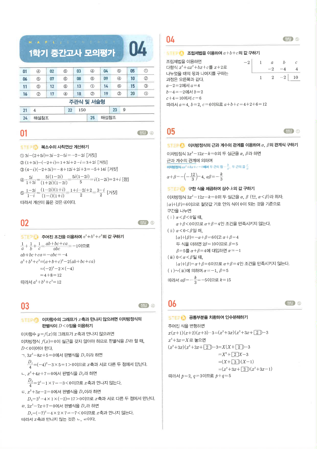 마플시너지 공통수학1 주요문항 풀이