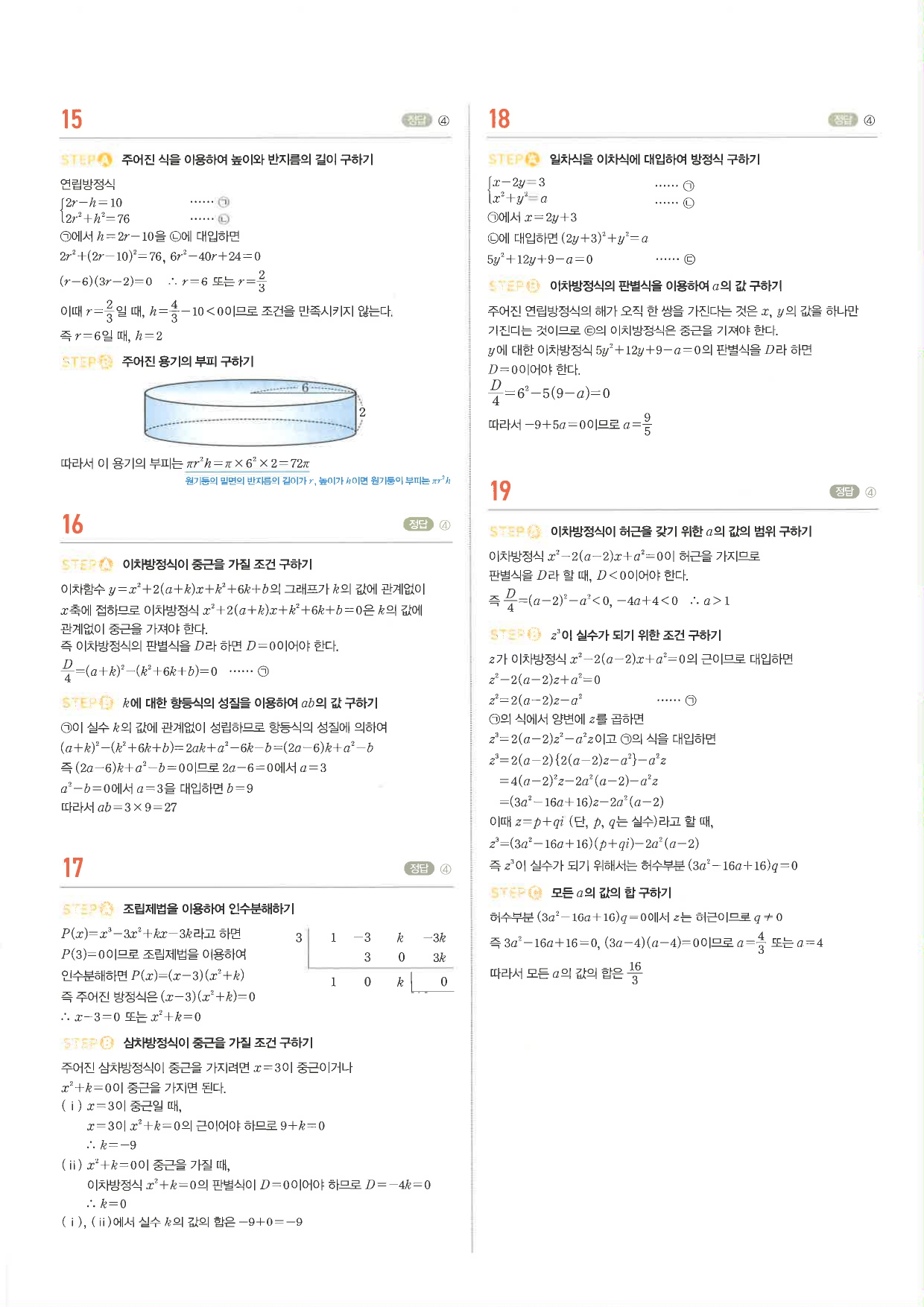 한 권만 제대로 풀어도 고등학교 공통수학1의 모든 문제 유형을 접할 수 있을 정도로 풍부한 구성을 자랑합니다.