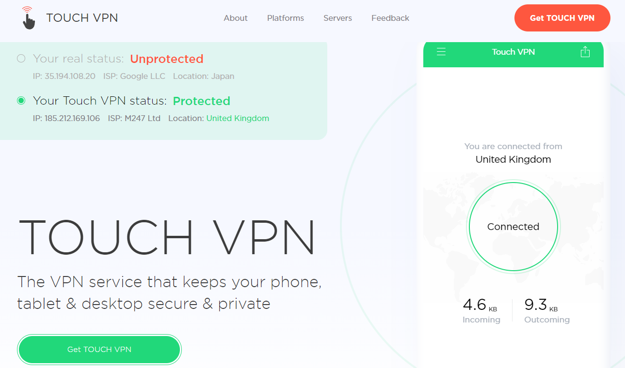 TOUCH VPN은 데이터 보호와 익명의 웹 서핑을 약속하는 PC용 무료 VPN 프로그램입니다. 사용자는 한 번의 터치로 활성화시킬 수 있으며, 완전히 무료로 이용할 수 있습니다. 이 VPN은 무제한 대역폭과 장치를 제공합니다.