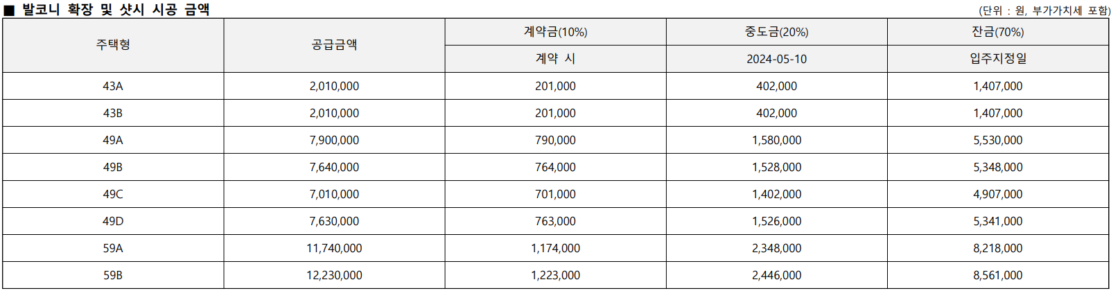 - 43A타입(38세대) : 12.05억