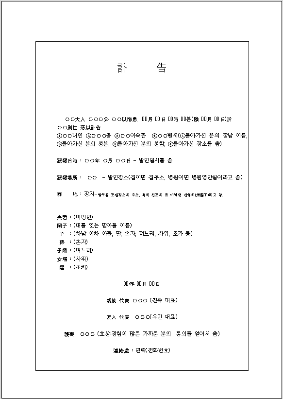 부고장 양식 hwp, doc, pdf 다운로드 (메일, 문자, 메시지, 형식 모음) 10 종 모음 총정리