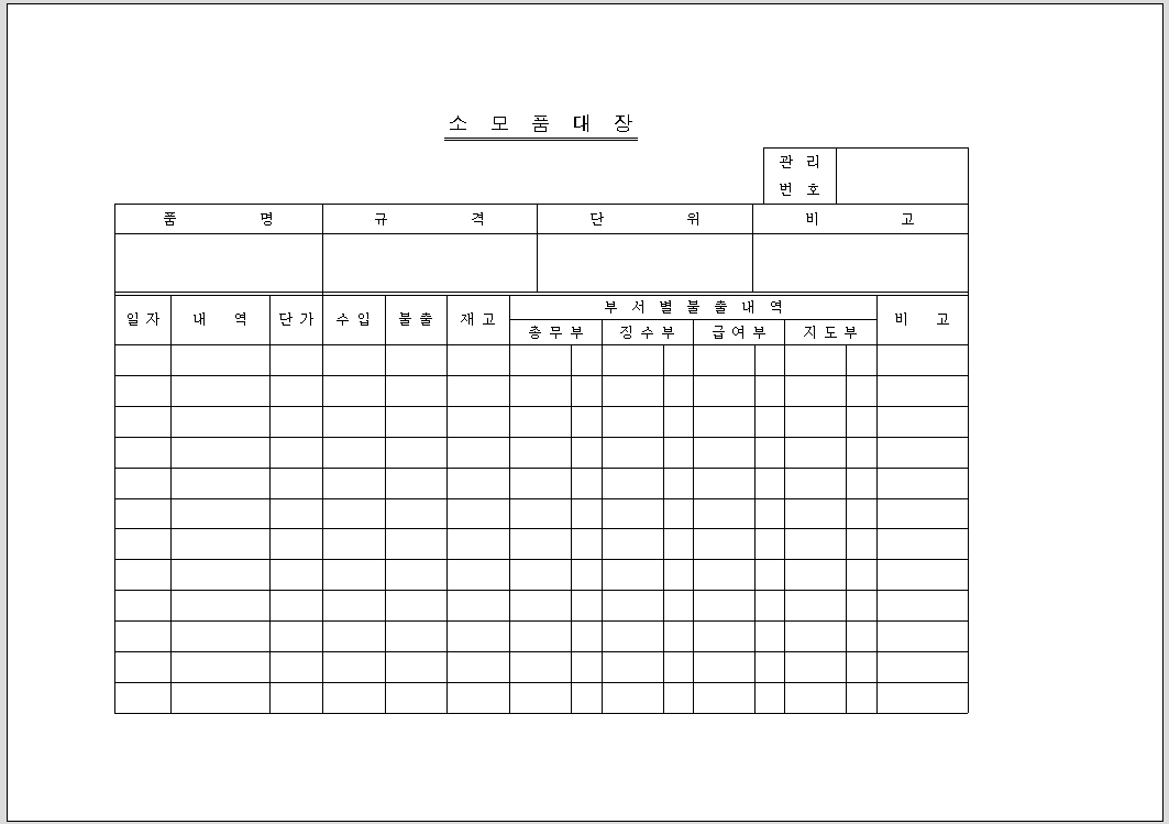 소모품대장 양식 다운 hwp