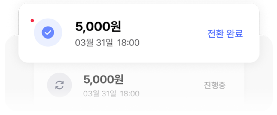 만약 전환 취소라는 항목이 나타난다면 전환 내역에서 취소 사유를 확인하고 재신청 해 주시면 됩니다.