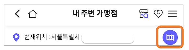 - 서울페이+ 앱 첫 화면의 내 주변 가맹점 터치