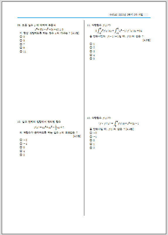 수학(하) 분당 수내고 2학년 2022학년도 2학기 2회 지필고사 기출 문제 족보 pdf 무료 다운