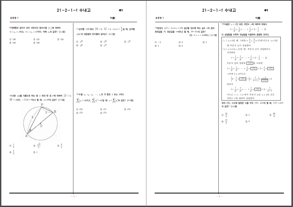 아래 수내고등학교 수학(하) 지필평가 문항지를 이미지와 PDF로 첨부해 두었습니다.