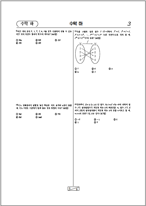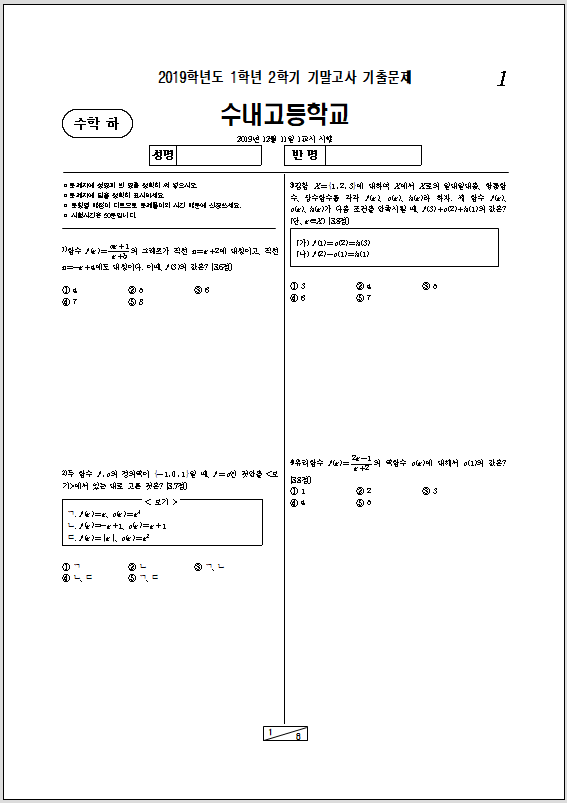 수내고 고1 1학년 2학기 기말고사 기출문제 수학(하) _ 함수 경우의 수