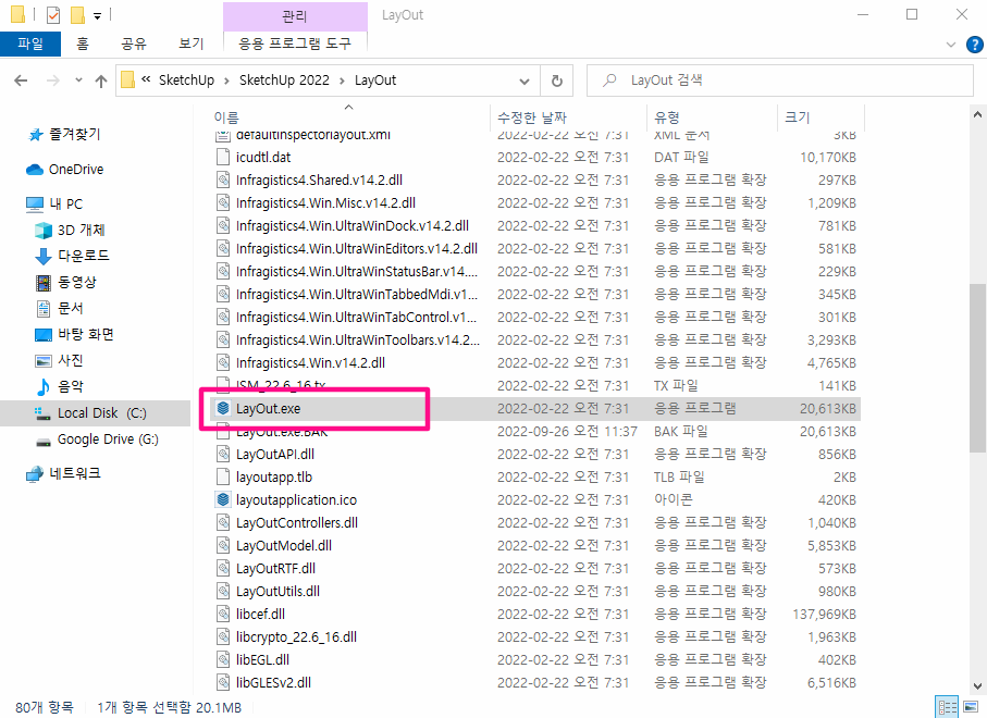 그리고 스케치업 폴더로 들어가서 LayOut.exe 를 더블클릭해서 실행해 주세요.