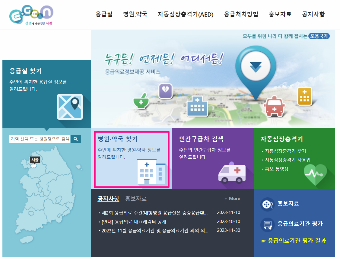 약국 뿐만 아니라 병원, 응급실, 민간 구급차 검색, 자동심장충격기와 관련된 유용한 정보도 제공하고 있습니다. 바로가기는 하단에 바로가기 링크를 첨부해 놓도록 하겠습니다.