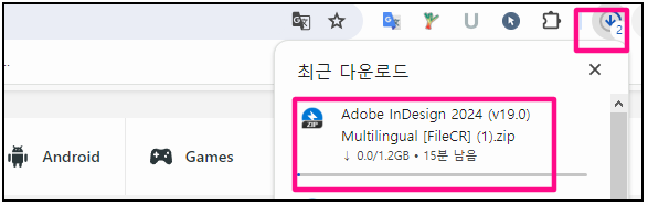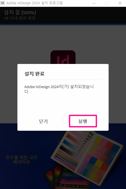 어도비 인디자인(indesing) 2024 가 잘 설치가 진행이 되고 있습니다.