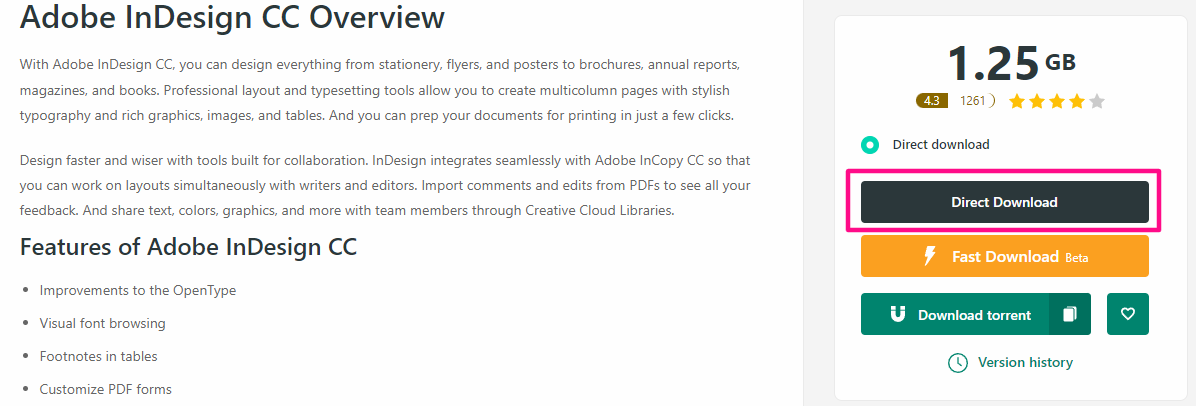 설치에 앞서 하단에 바로가기 다운 링크를 통해 인디자인을 다운로드 해 주세요.