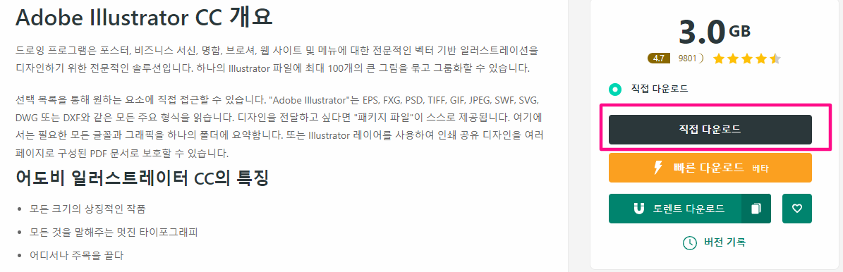 하단에 링크를 통해 일러스트레이터를 다운로드 할 수 있습니다.