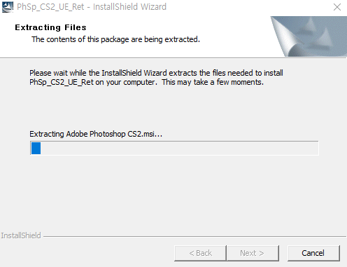 다운로드 받은 Adobe Photoshop CS2.exe 파일을 더블클릭하면 아래와 같이 자동으로 인스톨이 되며 설치가 시작됩니다.