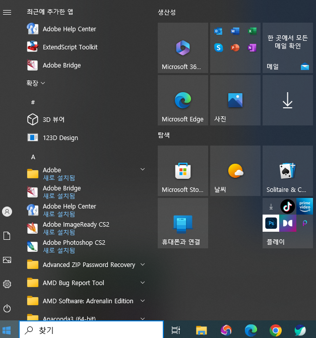 오른쪽 하단에 시작 버튼을 눌러보면 보이시나요?