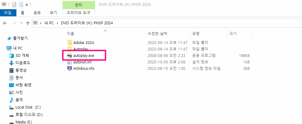 Autoplay.exe를 클릭해서 실행해 주세요.