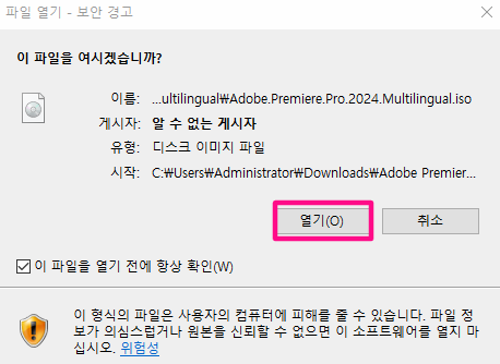 보안경고에서 열기 클릭