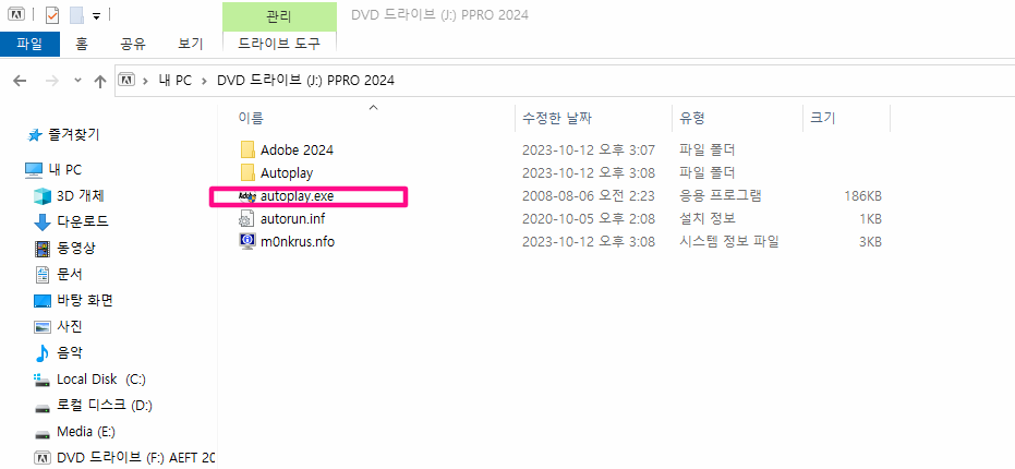 Autoplay.exe를 클릭해서 실행해 주세요.