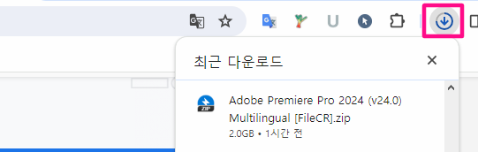 브라우저 상단에 다운로드가 표시가 되는 걸 확인하실 수 있습니다.
