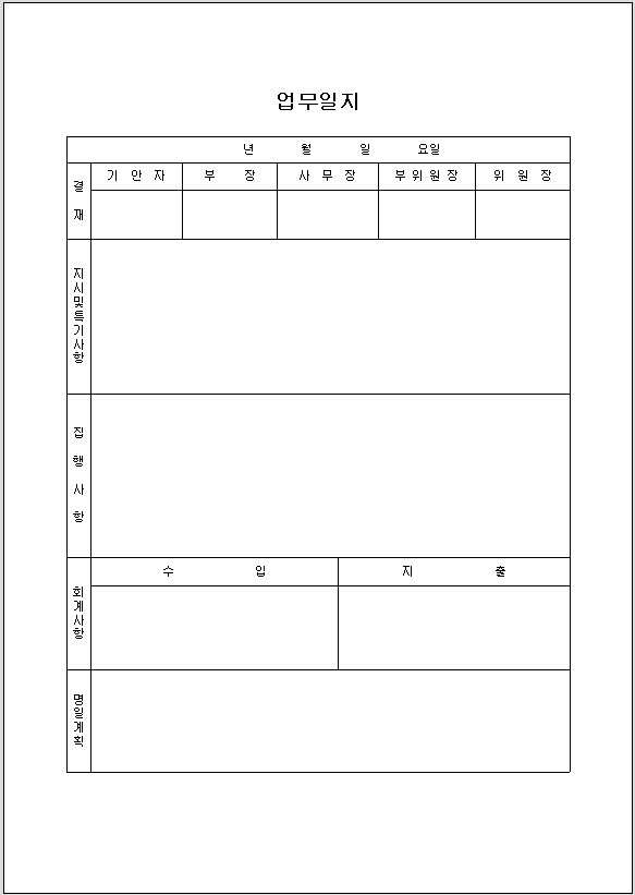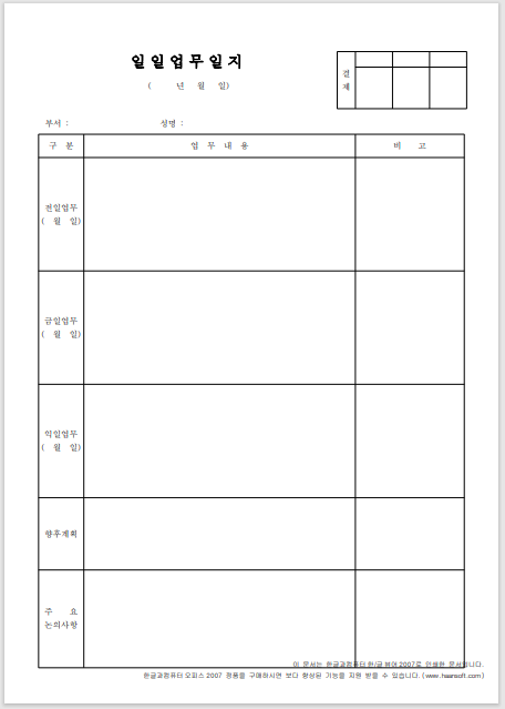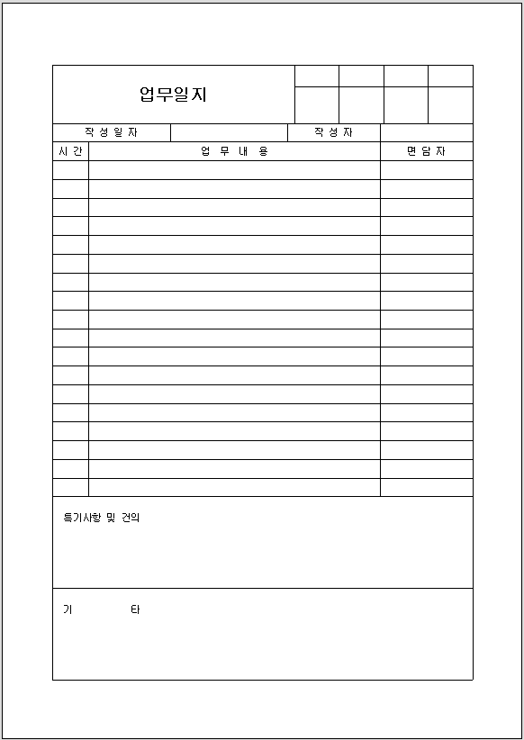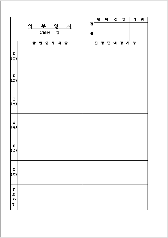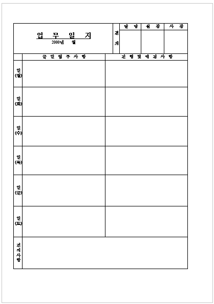 - 날짜: 업무일지를 작성하는 날짜를 기록합니다.