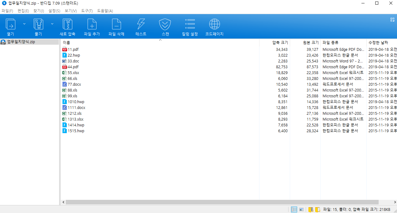 상단에 첨부된 업무일지양식.zip 파일은 총 15종류의 업무일지가 포함되어 있습니다.