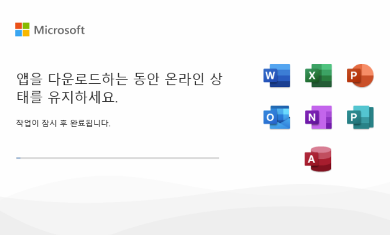 셋업 실행프로그램을 더블클릭하면 아래와 같이 MS office가 설치가 진행이 됩니다.