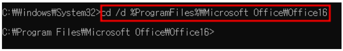 32비트 : cd /d %ProgramFiles(x86)%\Microsoft Office\Office16