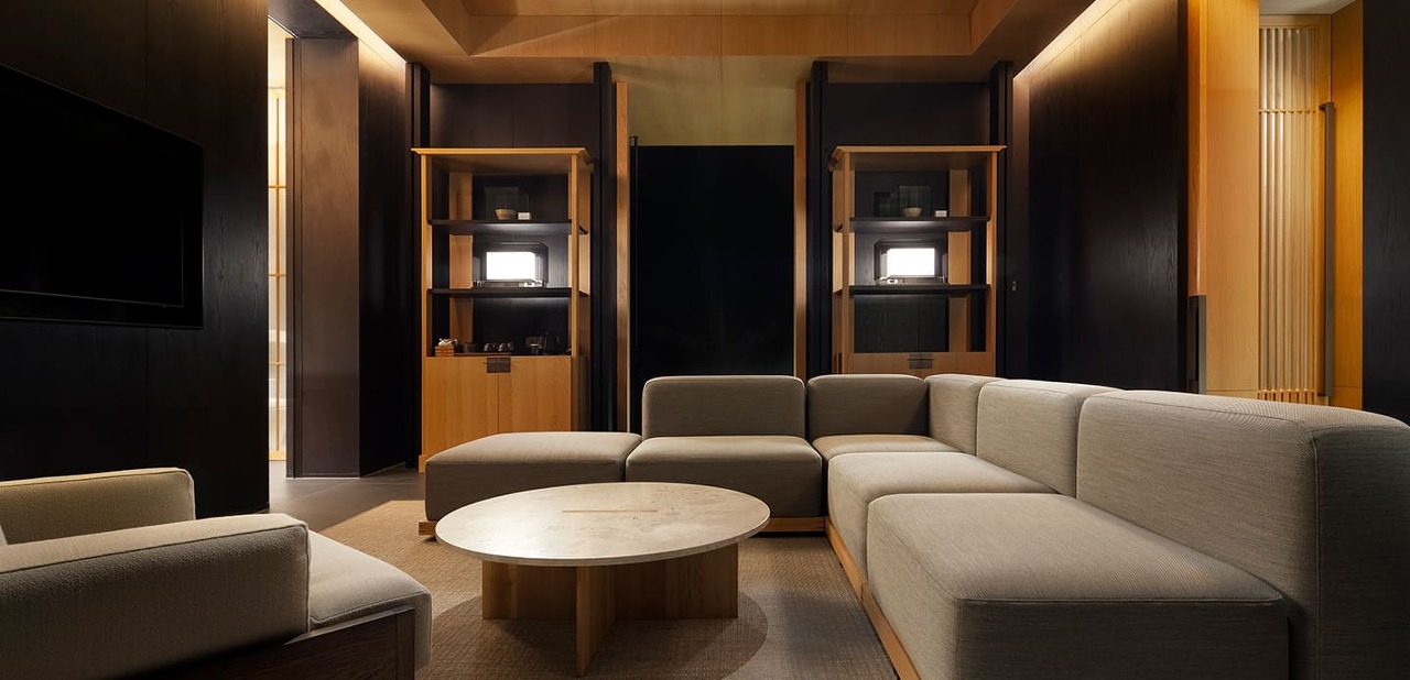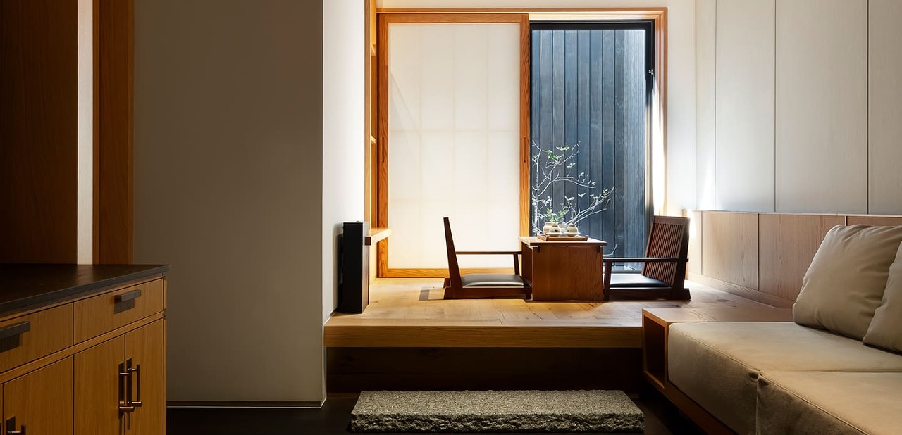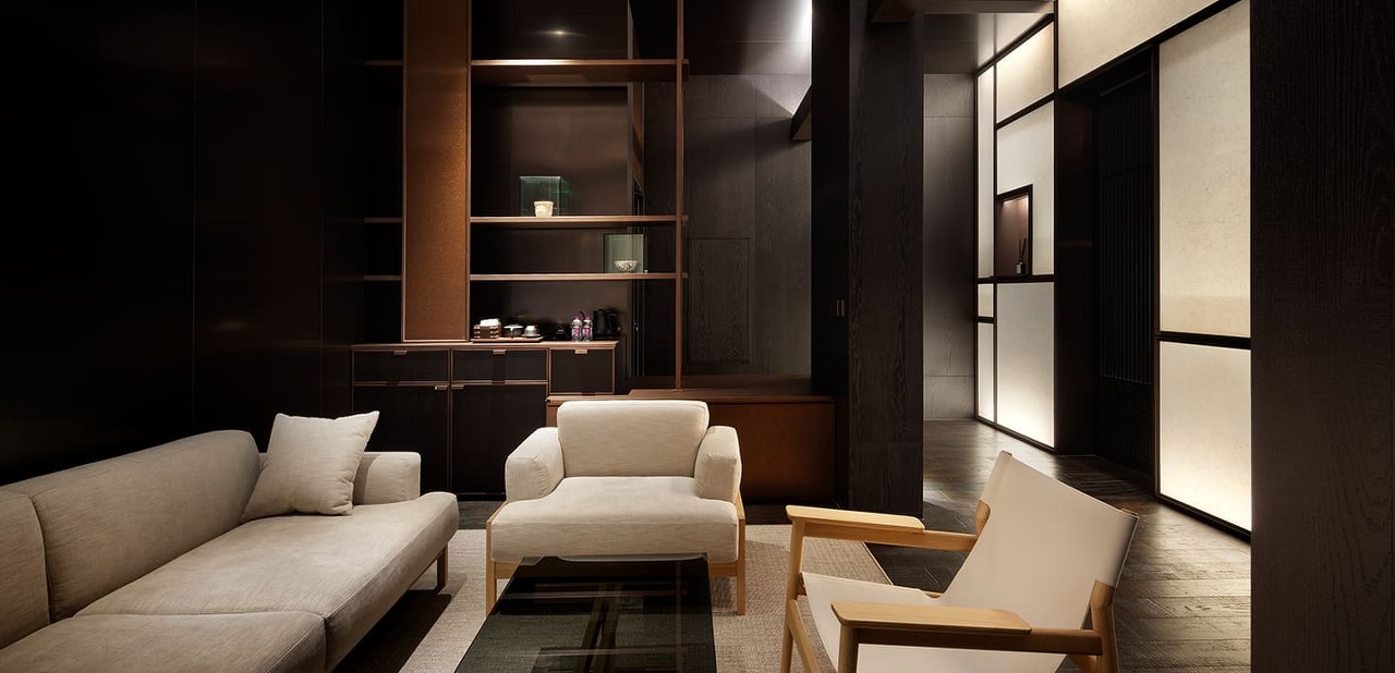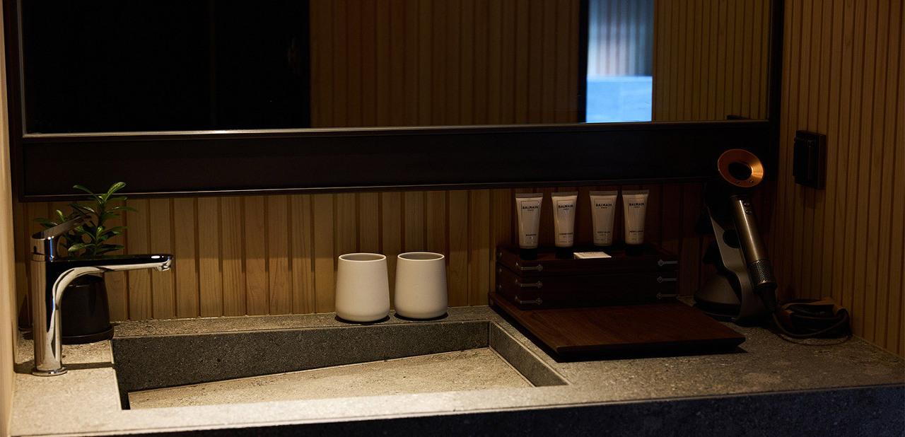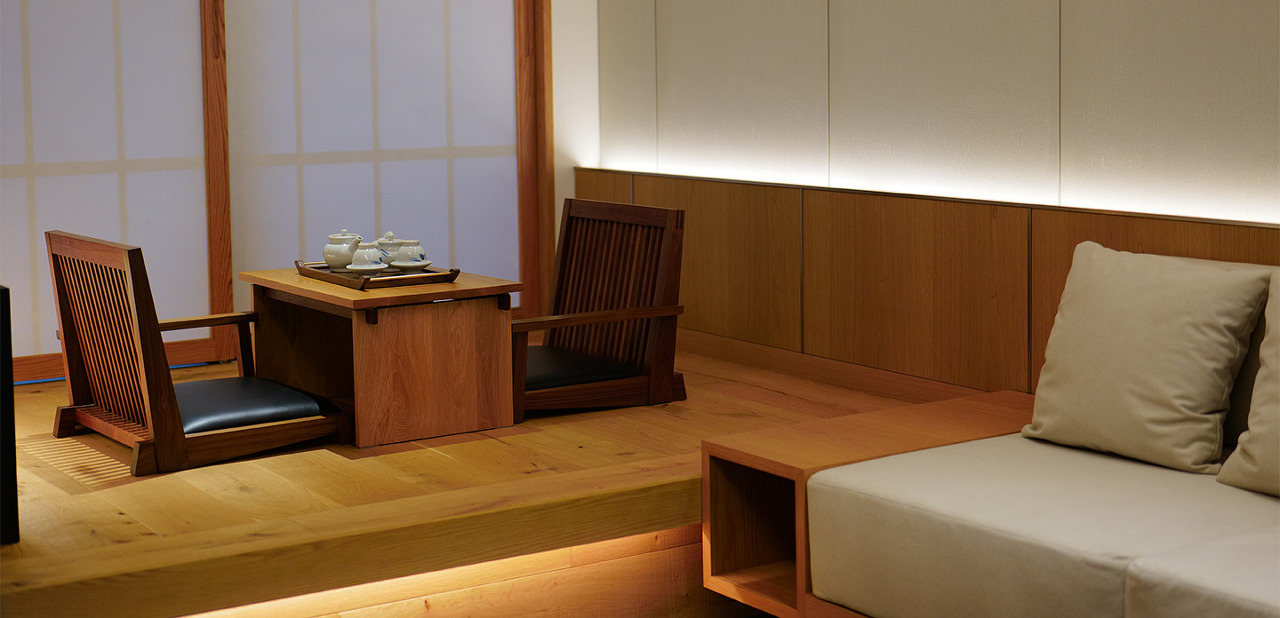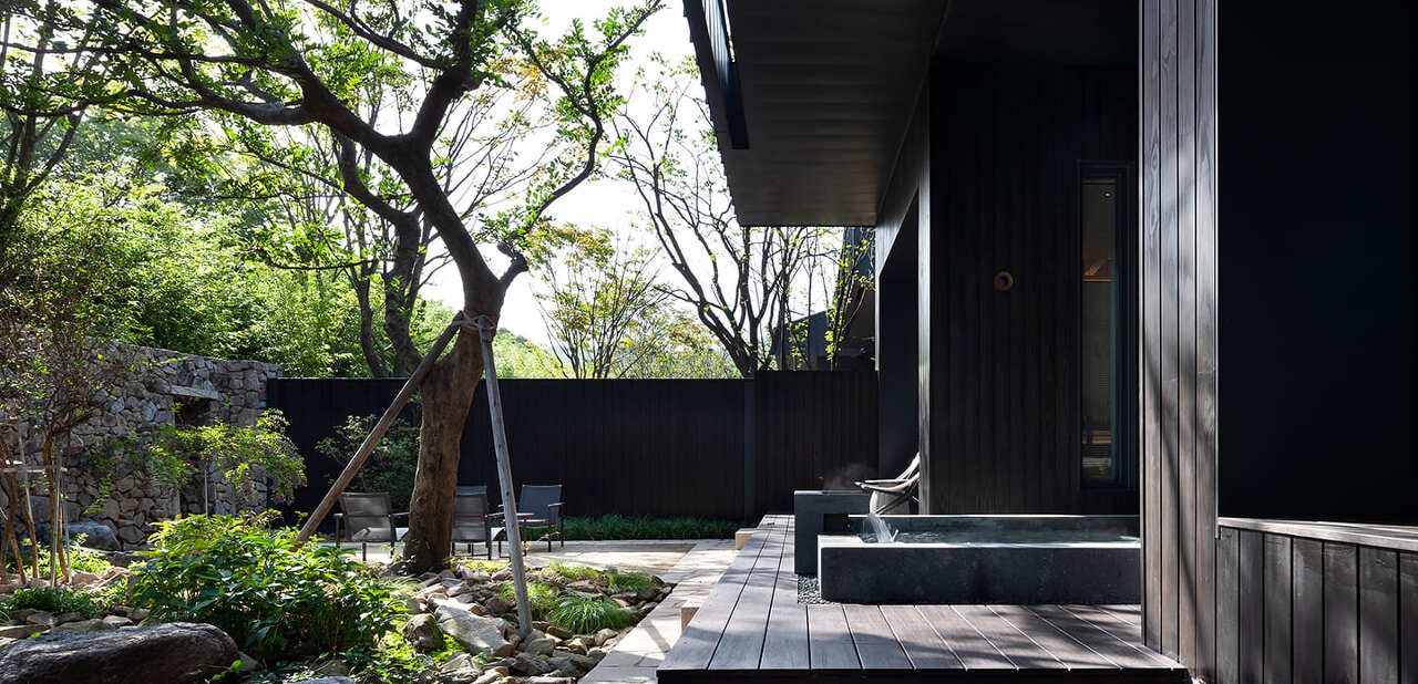 오크톤의 어두운 계열과 백색의 인테리어로 조화롭게 구성이 되어 있는 객실로 세련된 감각을 느끼실 수 있는 객실입니다. 노천탕은 물론 히노끼 욕조도 함께 갖추고 있어 따듯한 반신욕을 즐기실 수 있는 객실입니다.