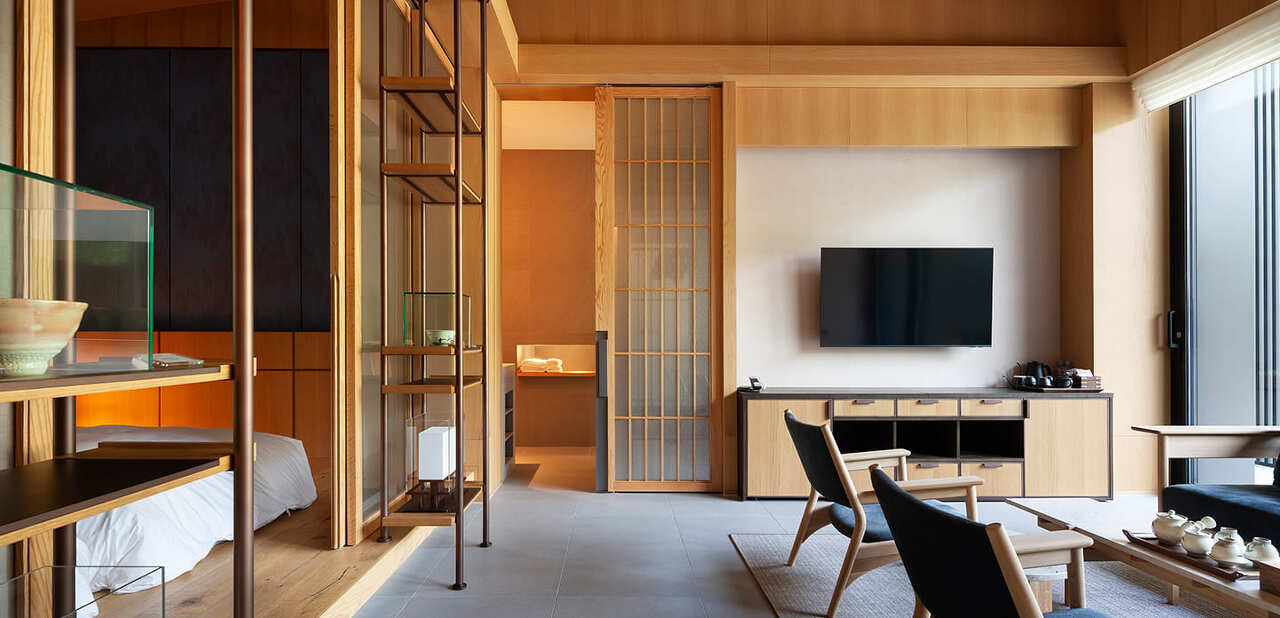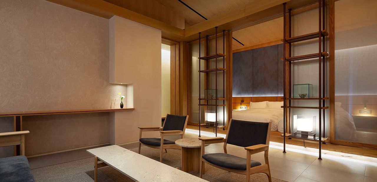 - 객실 구성 : 침실, 거실, 옷장, 파우더룸, 샤워부스, 화장실, 노천탕, 히노끼 욕조