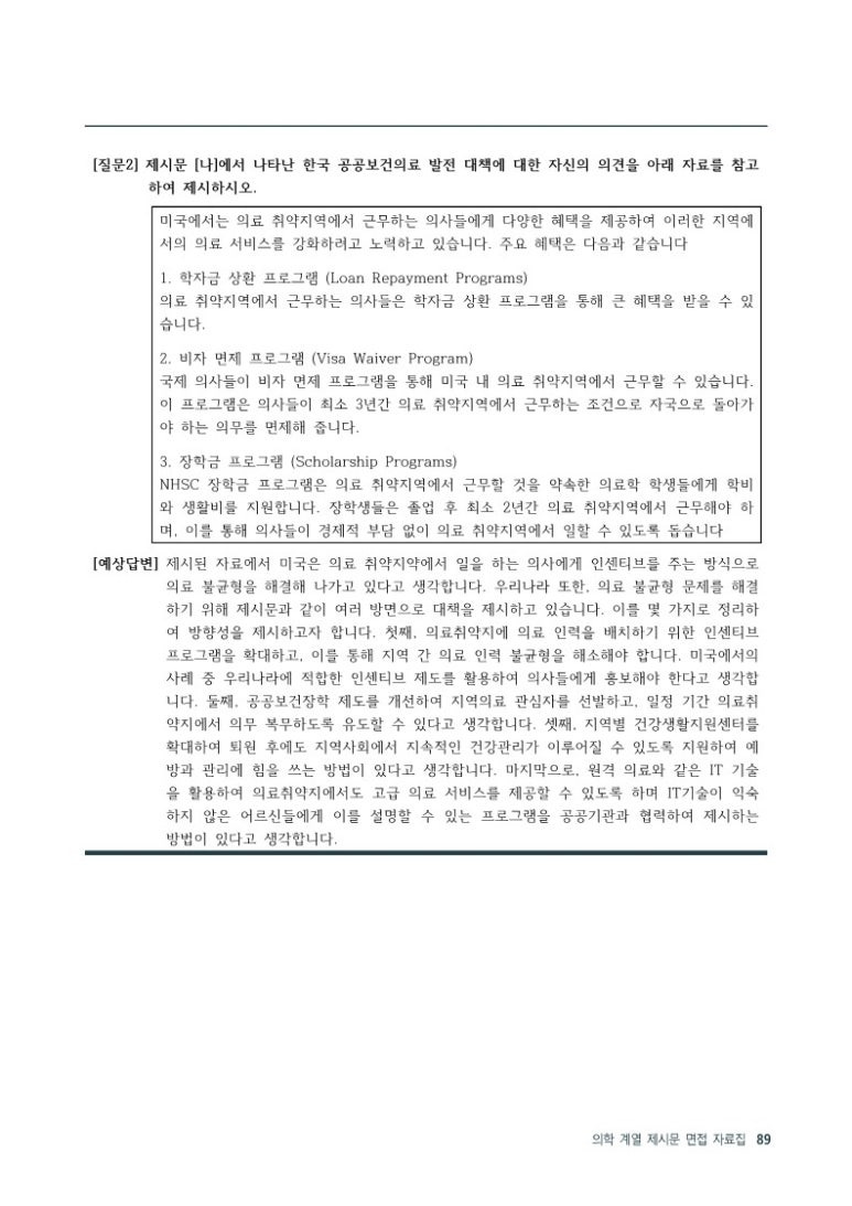 Part 2 )의학 계열 제시문 면접 모의문제