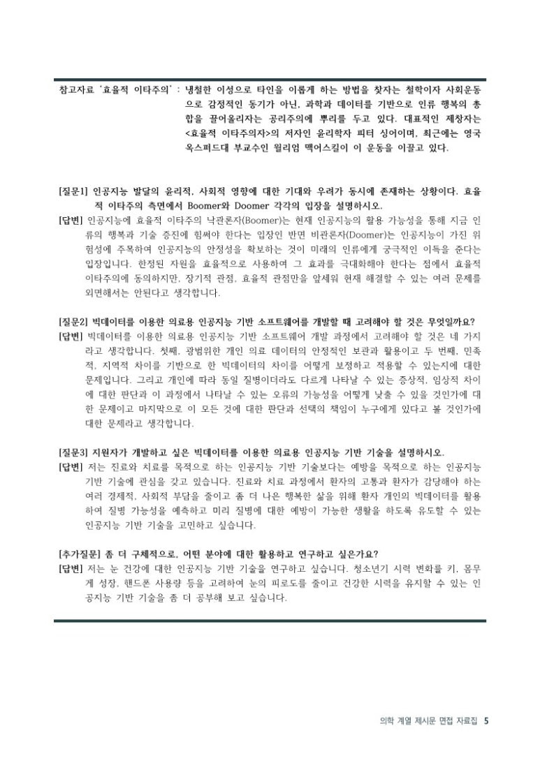 의대 의예과 의학계열 면접 자료집