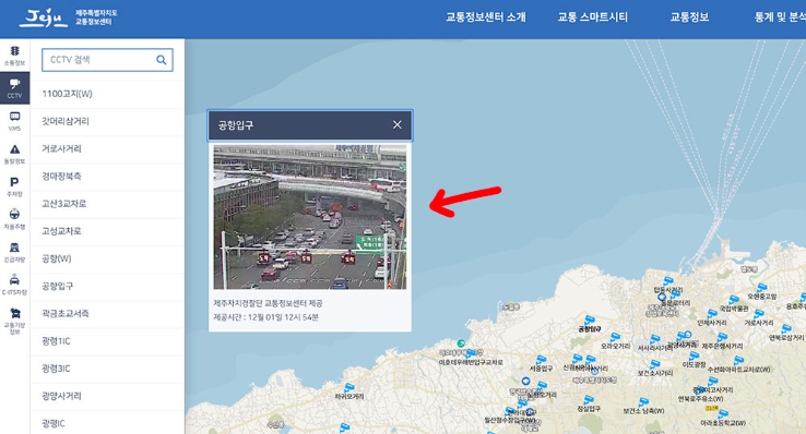 이 밖에도 제주특별자치시에 교통정보센터에서는 실시간 교통 상황을 CCTV로 확인이 가능합니다. 아래 지역별 CCTV 현황을 참고하셔서 CCTV 아이콘을 클릭하시면 해당 교통상황도 실시간으로 활용이 가능합니다.