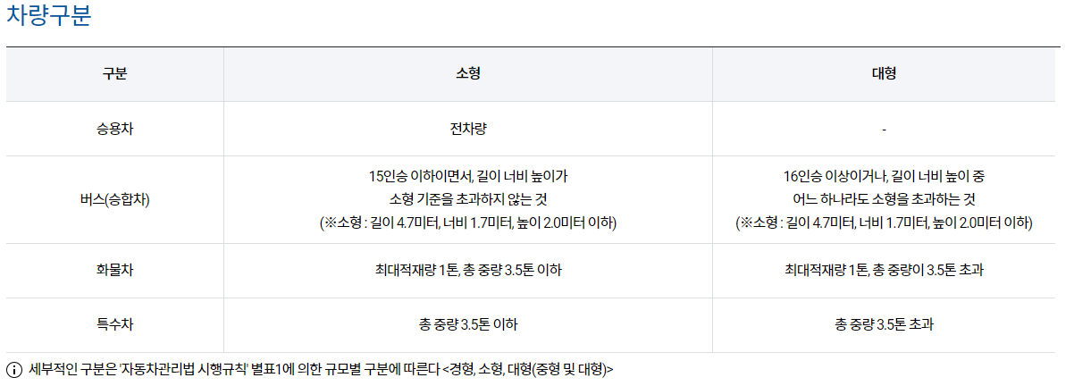 승용차와 버스 화물차를 구별하는 기준은 다음과 같습니다.