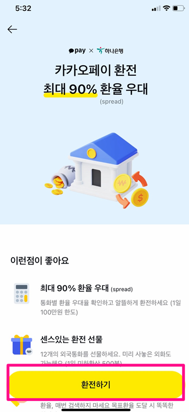 카카오페이 환전 가능 시간 및 환전 가능 한도