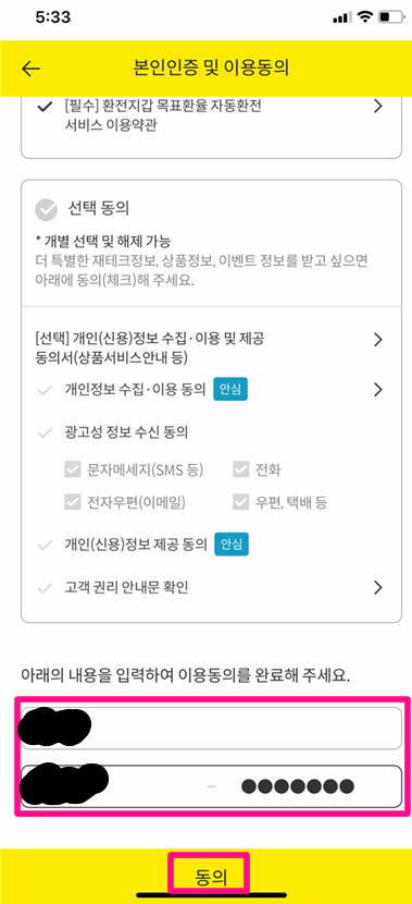 7. 본인인증을 위한 주민등록번호 뒷자리 입력