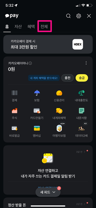 1. 카카오톡 pay에서 전체 메뉴 클릭