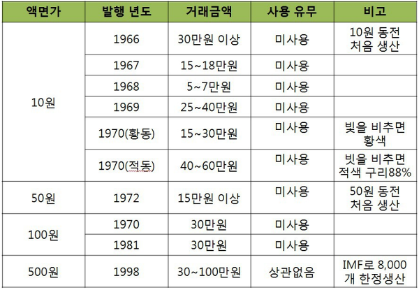 희귀동전 옛날동전 발행년도 희귀년도 가격표 거래소 확인 총정리